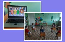 Дети смотрят обучающие мультфильмы о правилах дорожного движения