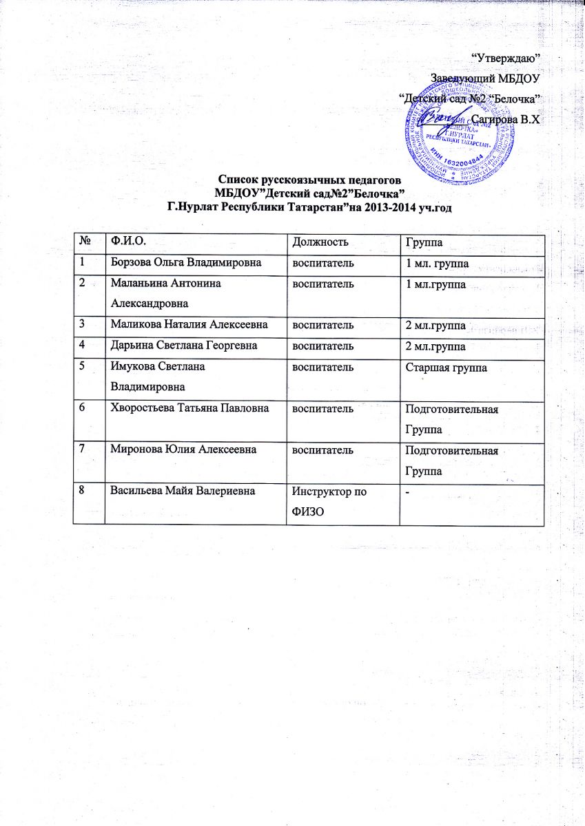 Список русскоязычных педагогов/ Рус телле педагогларның исемлеге
