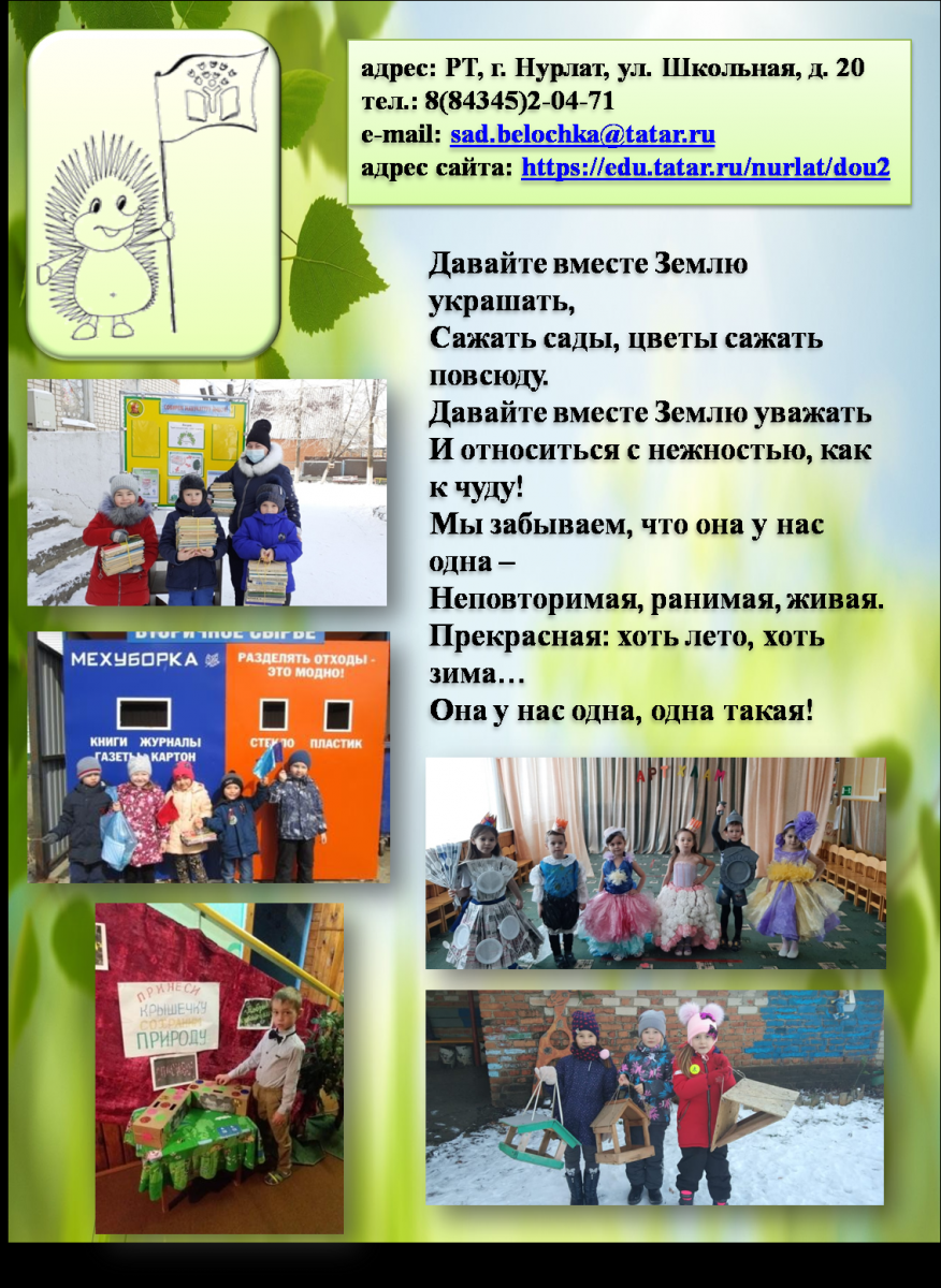 | E-Mail: | sad.belochka@tatar.ru; ds.belochka20@mail.ru |