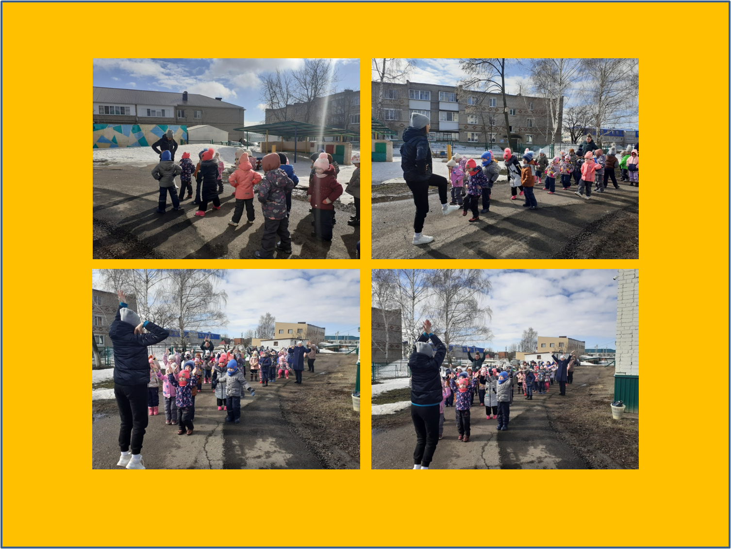 Ел саен 7 апрель көнне безнең балалар бакчасында «Бөтендөнья сәламәтлек көне»нә багышланган чаралар үткәрелә. Бүген ул урамда иртәнге зарядка белән башланып китте. Аннан физик культура буенча инструктор Федорова М.А. өлкән һәм мәктәпкә әзерлек төркеме балалары белән саф һавада спорт эстафеталары үткәрде. Әти-әниләр дә читтә калмады һәм бу көнне «Әни, әти, мин - сәламәт гаилә» акциясенә кушылдылар, балалар белән бергә зарядка ясадылар. Төркем тәрбиячеләре балалар белән сәламәтлек, сәламәт яшәү рәвешенең әһәмияте турында әңгәмәләр үткәрделәр, кызыклы физкультминуткалар, сәнгать әдәбиятын уку, сәламәтлек темасына иллюстрацияләр карау оештырдылар, хәрәкәтчән уеннар уйнадылар.