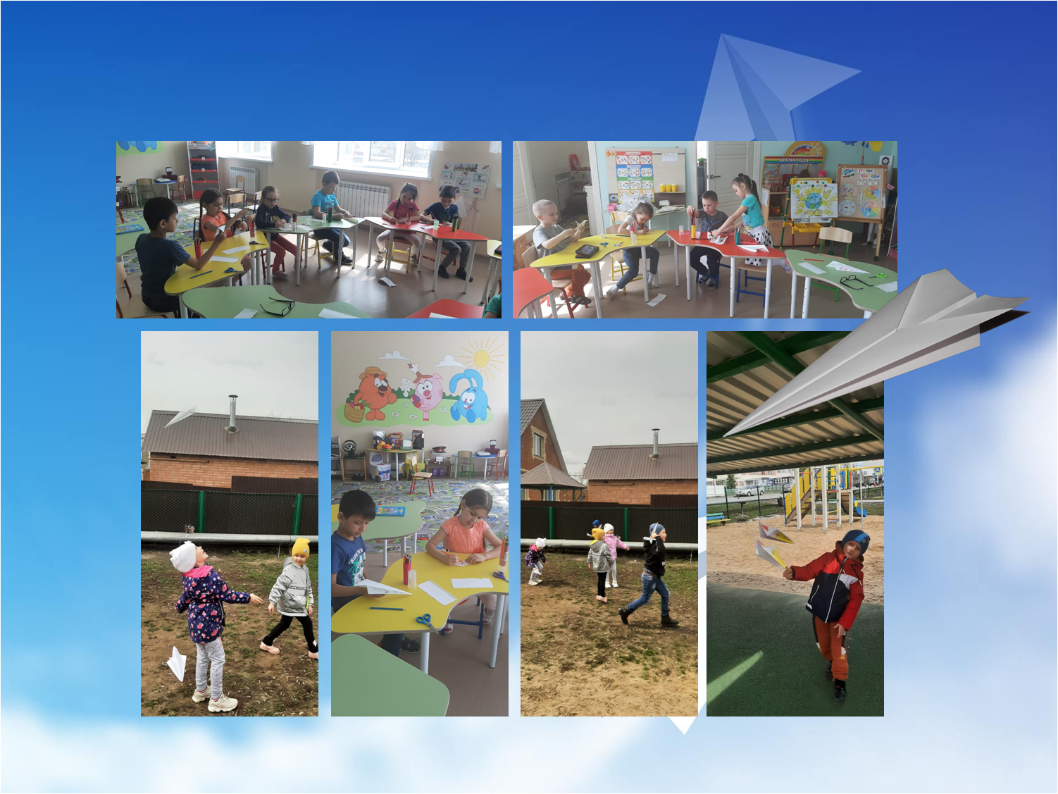 Безнең кем балачагында кәгазь самолетлар ясамады?! Кәгазь самолет - ул балачактан ук танылган оригами схемаларының берсе. Тәрбиячеләр балаларны кәгазь самолетлар ясарга өйрәттеләр һәм алар белән төрле конкурслар үткәрделәр: «Иң яхшы самолет», «Иң ерак очыш» һәм «Иң матур очыш». Балалар кәгазь самолетлар ясадылар, аларны буядылар, очу үзлекләре сынадылар, ә аннан соң тиз йөрешле сыйфатларда һәм очышның ераклыгында ярыштылар. Барлык мәктәпкәчә яшьтәге балаларның да искиткеч очу аппаратлары барлыкка килде. Бинада самолетны кәгазьдән эшләтеп җибәрергә була, әмма урамда ул үзен күпкә яхшырак күрсәтәчәк. Анда аңа җил дә ярдәм итәчәк. Балалар рәхәтләнеп самолетларын күккә очырдылар.