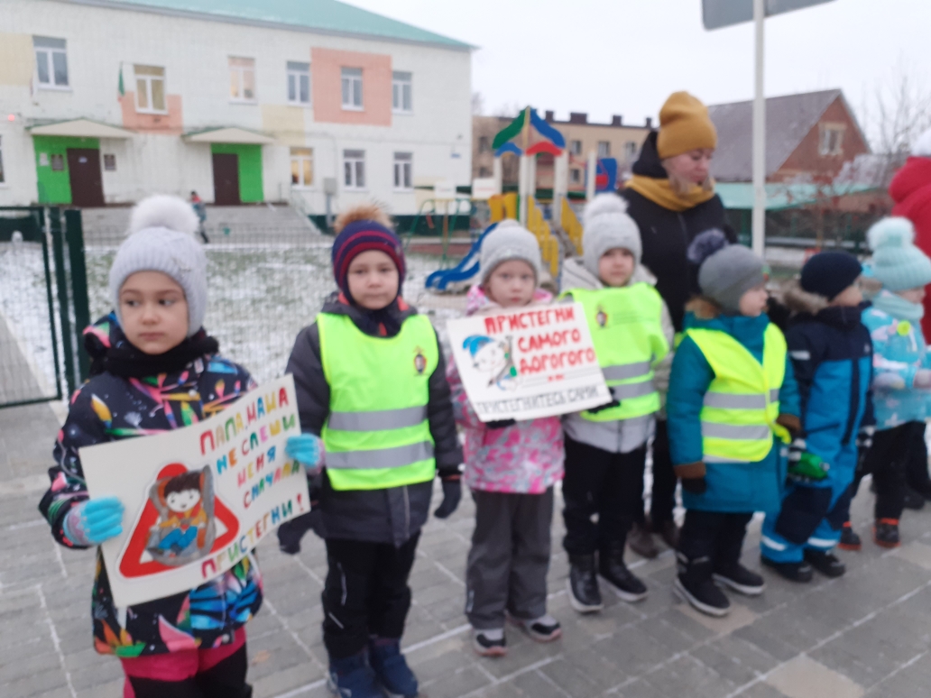 Опубликовано: 16.11.2022Сегодня в детском саду прошла акция с детьми старших и подготовительной групп "Пристегни ремень - сохрани жизнь", приуроченная ко Всемирному дню памяти жертв дорожно-транспортных происшествий. Акция направлена на привлечение внимание родителей к снижению дорожно-транспортного травматизма и профилактики ДТП.