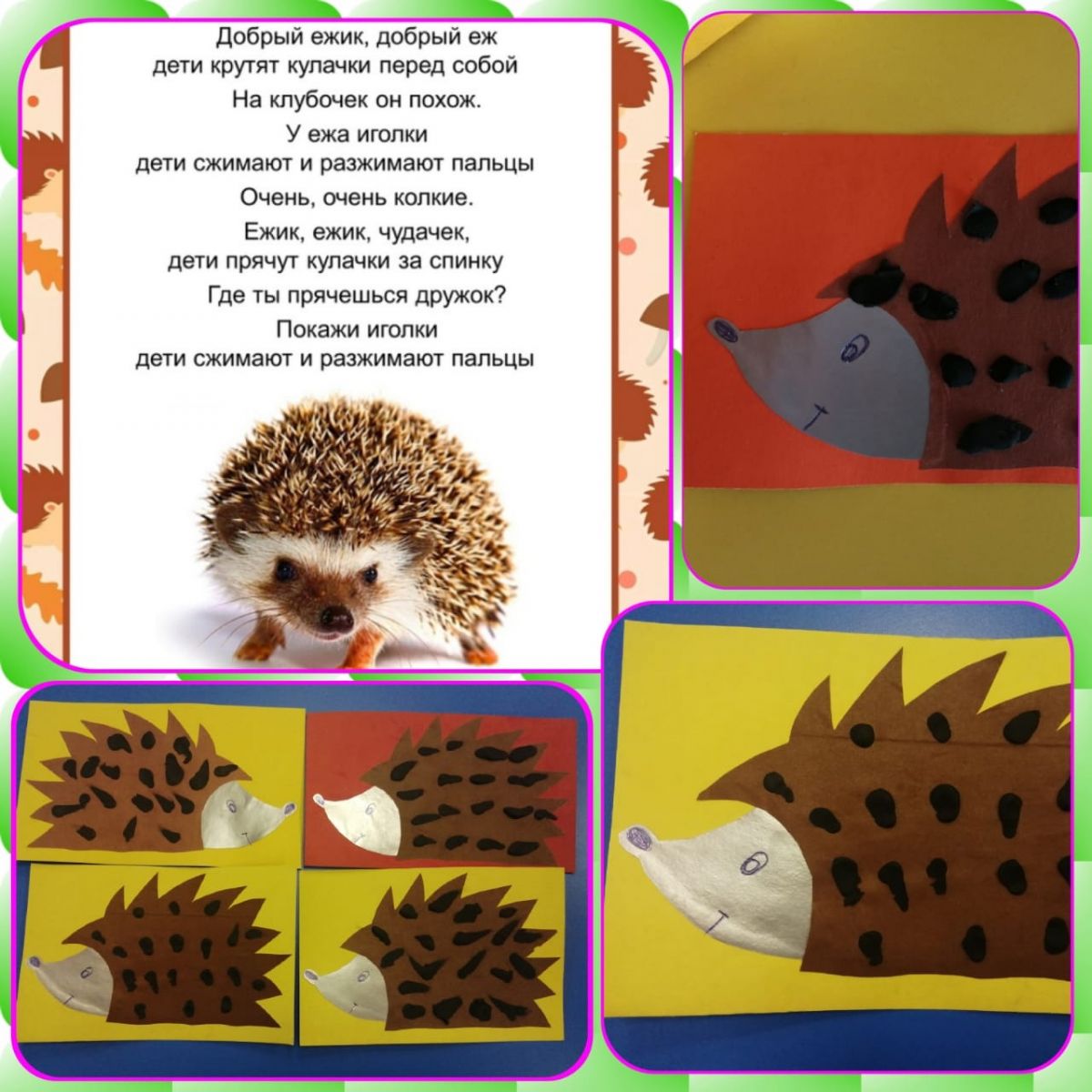 Опубликовано: 03.02.2023Дети 2 младшей группы (воспитатель Хворостьева Т.П.) приняли участие в экологической онлайн акции, посвящённой Дню ежа и выполнили поделку в технике пластилинографии "Наш колючий ежик". Фото1 Фото2