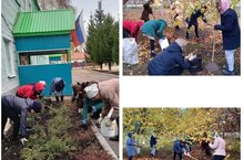Сегодня в нашем ДОУ прошел субботник. Сотрудники привели в порядок территорию к зимнему периоду: собирали мусор, сгребли листву и траву, привели в порядок клумбы, подмели игровые участки. Общими усилиями за несколько часов территория сада преобразилась: везде стало чисто и красиво./ Бүген безнең балалар бакчасында өмә узды. Хезмәткәрләр территорияне кышкы чорга тәртипкә китерделәр: чүп-чар, яфрак һәм үлән җыеп, чәчәк түтәлләрен тәртипкә китерделәр, уен участоклары ясадылар. Берничә сәгать эчендә гомуми тырышлык белән бакча территориясе үзгәрде: һәркайда чиста һәм матур булды.