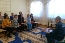Не берите в руки спички!В ДОУ была организована встреча с сотрудником ОДН Талиповым А.Н. Он провёл инструктаж по пожарной безопасности с персоналом ДОУ и практическое занятие по работе с огнетушителями.