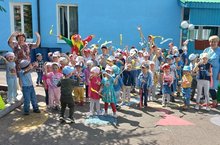Сегодня наш детский сад отметил светлый, красочный праздник "День защиты детей". Мы постарались в этот день создать праздничную атмосферу и порадовать детей весёлыми играми, песнями, танцами./Бүген безнең балалар бакчасы якты, төсле "Балаларны яклау көне" бәйрәмен билгеләп үтте. Без бу көнне бәйрәм атмосферасы булдырырга һәм балаларны күңелле уеннар, җырлар, биюләр белән сөендерергә тырыштык.