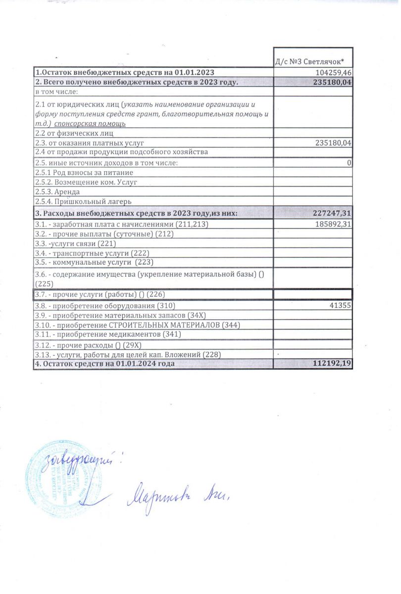 Публичный отчёт о расходовании внебюджетных средств на 2023 год
