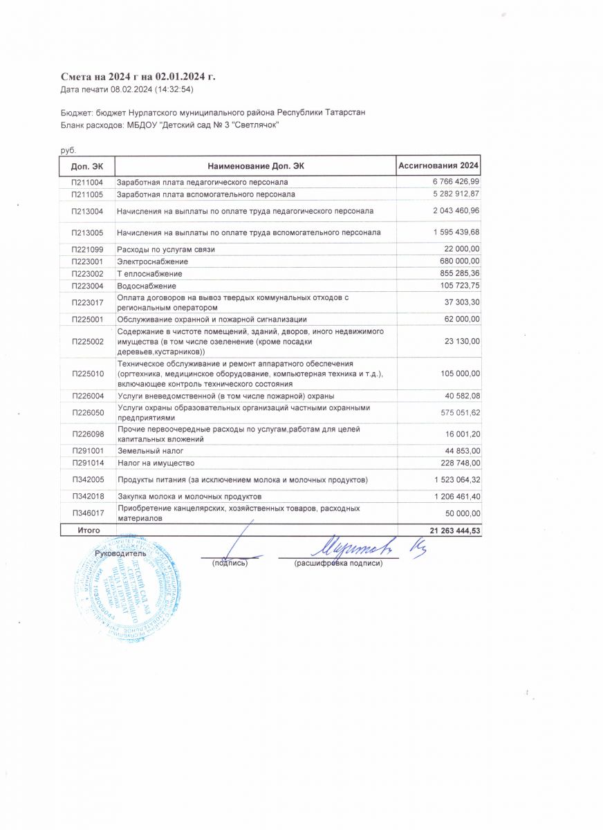 План финансово-хозяйственной деятельности на 01.01.2024 год/2024 нче елның 01 гыйнвар аена финанс-хуҗалык эшчәнлеге планы