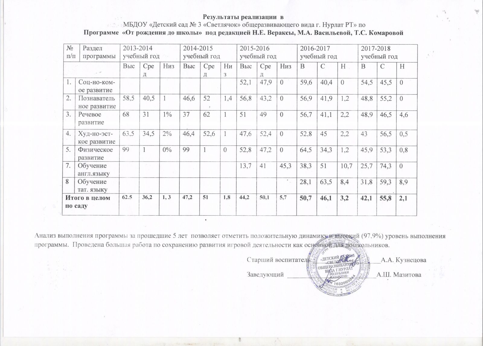 Результаты реализации 2016-2021 года