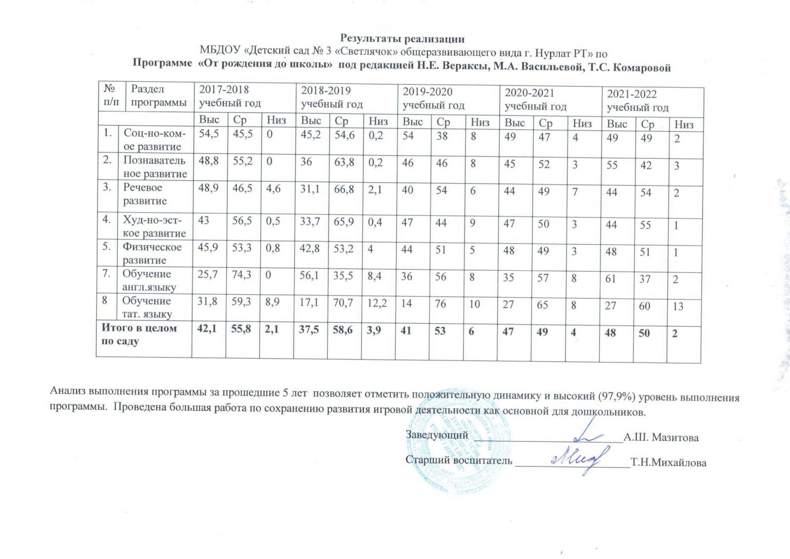 Результаты реализации на 2017-2022 года