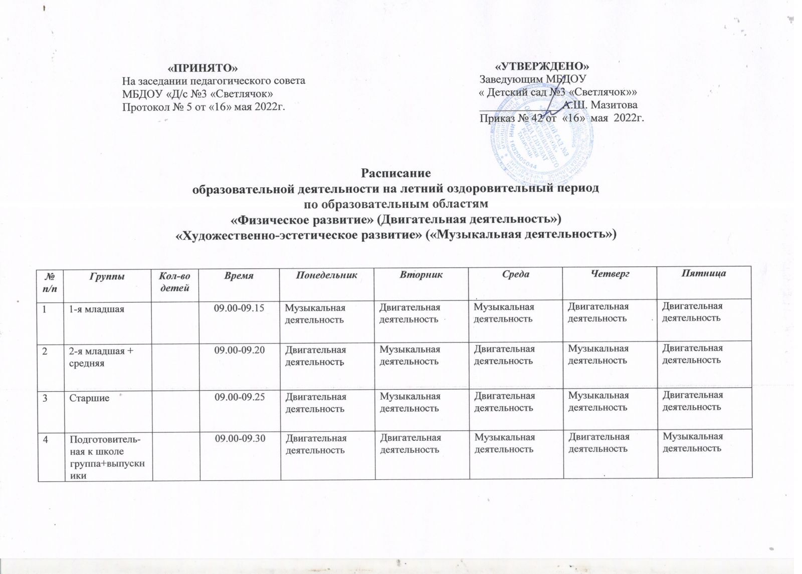 Расписание ОД на 2020-2021 учебный год (летний период)/ 2020-2021 уку елына укыту эшчәнлеге җәдвалы