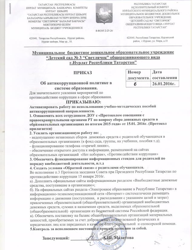 Приказ об антикоррупционной политике в системе образования / Мәгариф системасында коррупциягә каршы сәясәт турында боерык