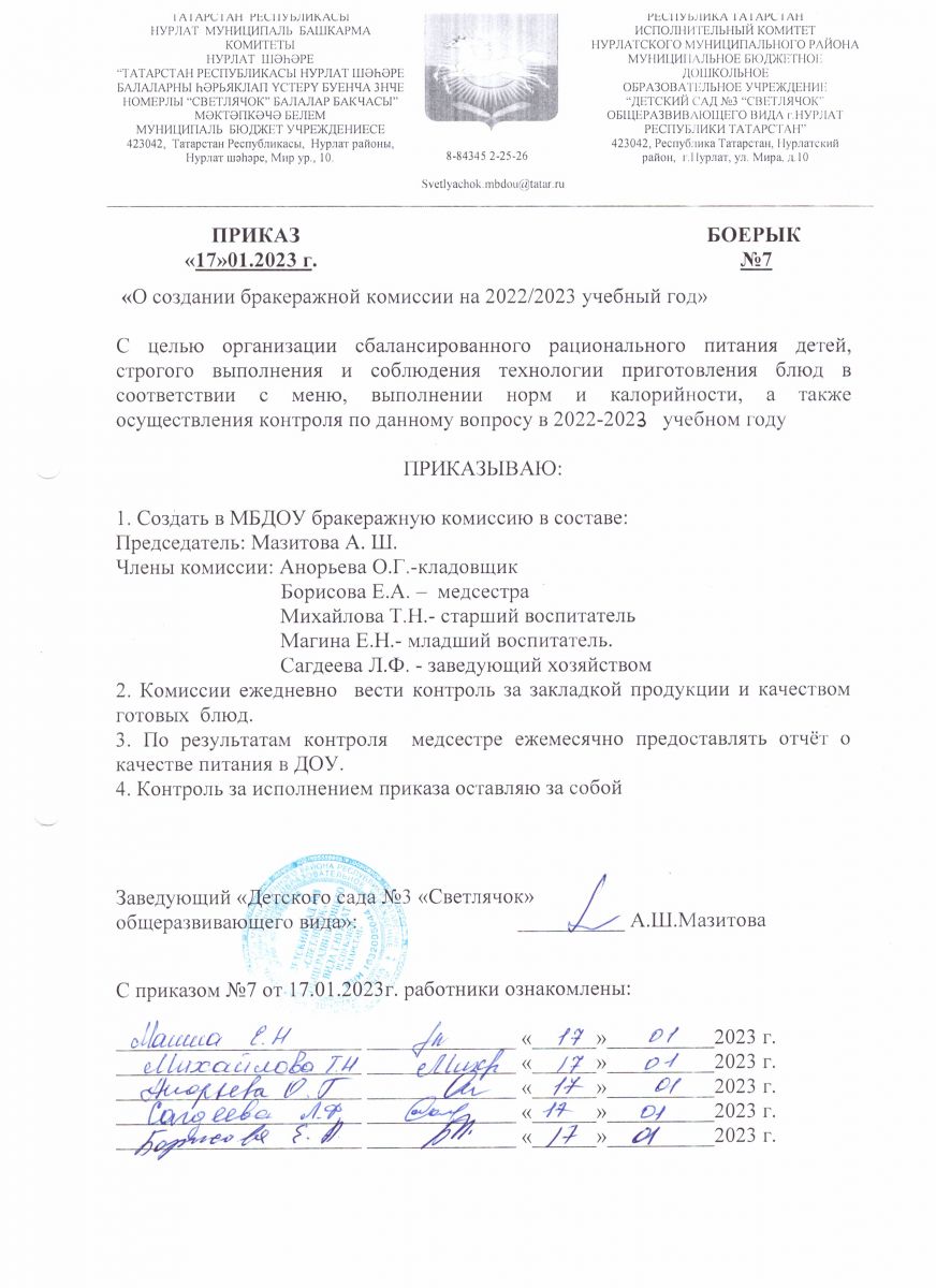 Приказ о создании бракеражной комиссии на 2022-2023 гг.