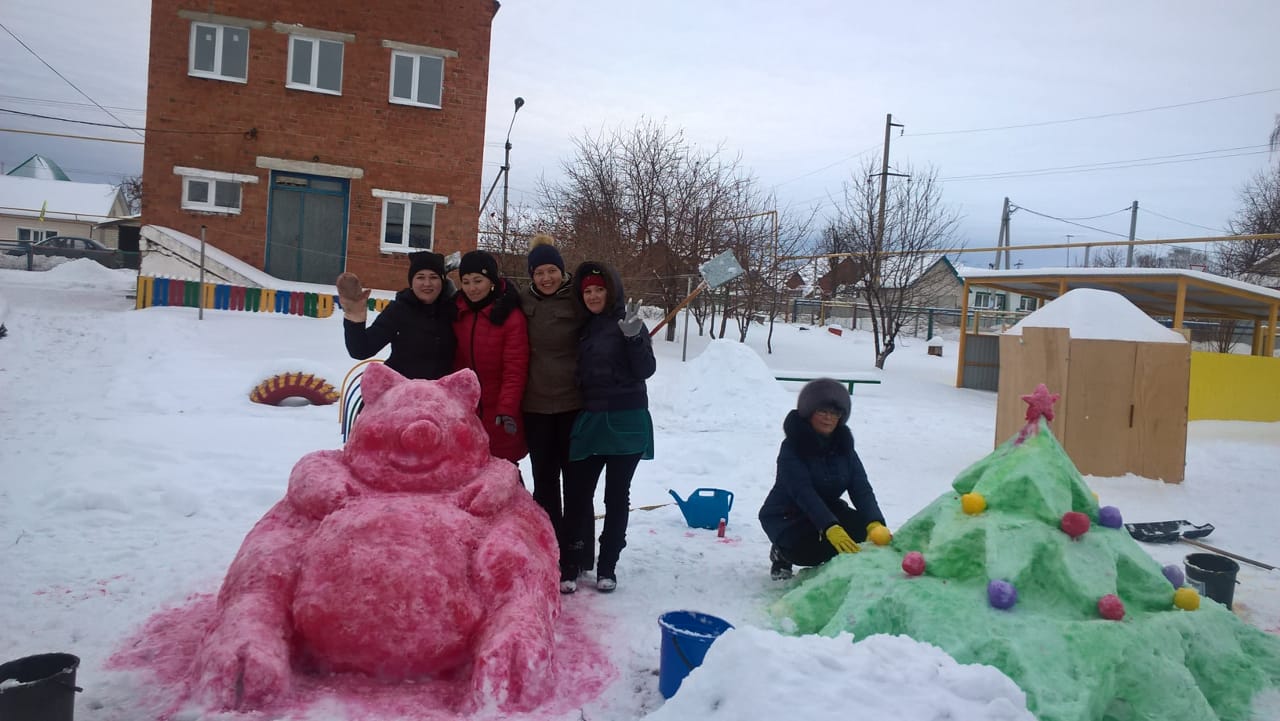 Бүген Яңа ел бәйрәмнәрен каршылауга әзерлек,күп еллар дәвамында кардан фигуралар ясау белән башланды. Безнең балалар бакчасы хезмәткәрләре бик теләп кардан сыннар ясадылар.
