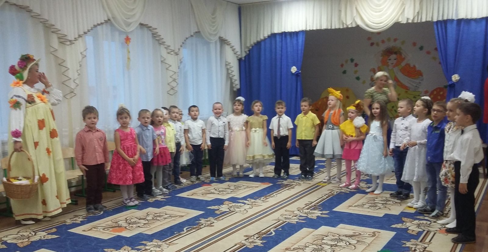 Опубликовано: 25.10.2019С 21 по 24 октября в нашем детском саду прошли осенние праздники. Дети с нетерпением ждали встречи с Осенью. Вместе с ней воспитанники отправились в увлекательное путешествие в осенний лес и на огород. На празднике дети перевоплощались в разных персонажей; пели песни, исполняли танцы, играли в веселые игры, отгадывали осенние загадки, рассказывали стихи. А самым ярким и запоминающимся эпизодом стал сюрпризный момент – корзина с яблоками для всех ребят!