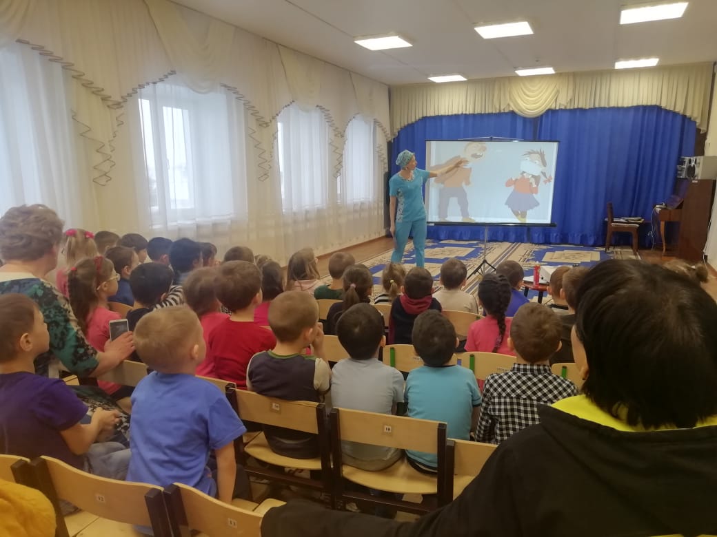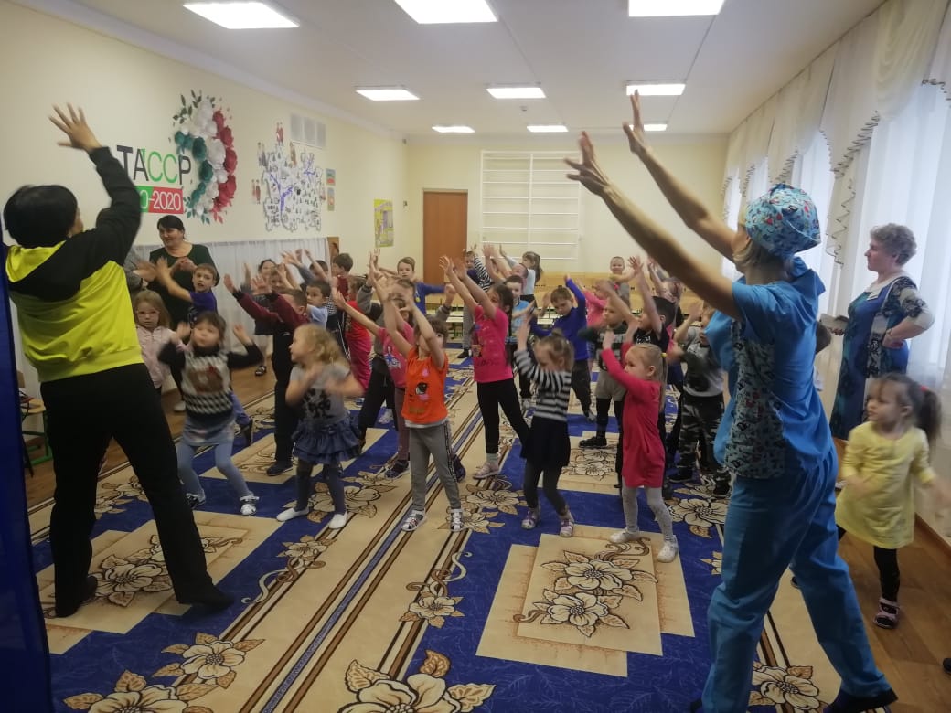 Опубликовано: 31.01.2020Сегодня в нашем детском саду медицинская сестра Борисова Е.А. в игровой форме провела беседу с детьми старших и средних возрастных групп на тему «Осторожно, грипп!». Цель данной беседы: формировать у детей сознательное отношение к здоровому образу жизни. / Бүген безнең балалар бакчасында шәфкать туташы Борисова Е. А. уен формасында өлкән һәм урта яшьтәге төркем балалары белән «Сак булыгыз, грипп!. Әлеге әңгәмәнең максаты: балаларда сәламәт яшәү рәвешенә аңлы караш формалаштыру.