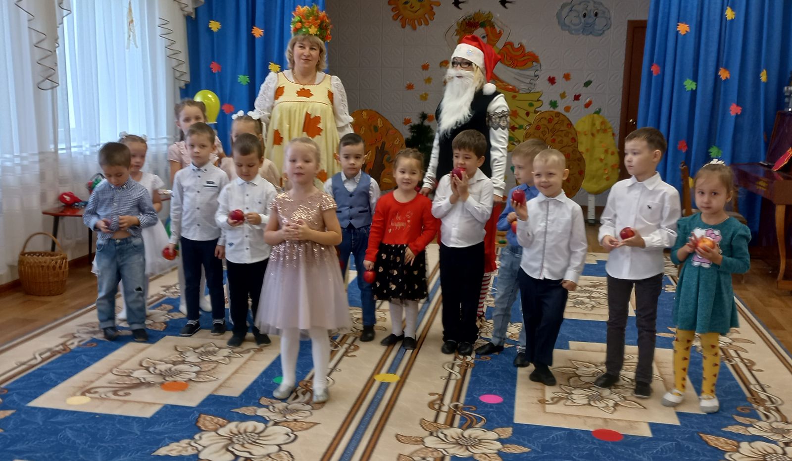 Опубликовано: 22.10.202121 - 22 Октября в нашем ДОУ прошел Осенниие праздники. Дети с удовольствием рассказывали стихи, пели песни, играли в различные игры. В гости к ребятам приходили Гномик, Простуда и Королева Осень. По завершению щедрая Осень угостила ребят вкусными наливными яблочками. Все дети остались довольными и счастливыми. / 21-22 октябрь көннәрендә безнең балалар бакчасында Көзге бәйрәмнәр булып узды. Балалар бик теләп шигырьләр сөйләделәр, җырлар җырладылар, төрле уеннар уйнадылар. Балаларга кунакка Гномик, салкын тию һәм Көз патшабикәсе килде. Юмарт көз ахырында балаларны тәмле салмак алмалар белән сыйлады. Барлык балалар да канәгать һәм бәхетле булып калдылар.