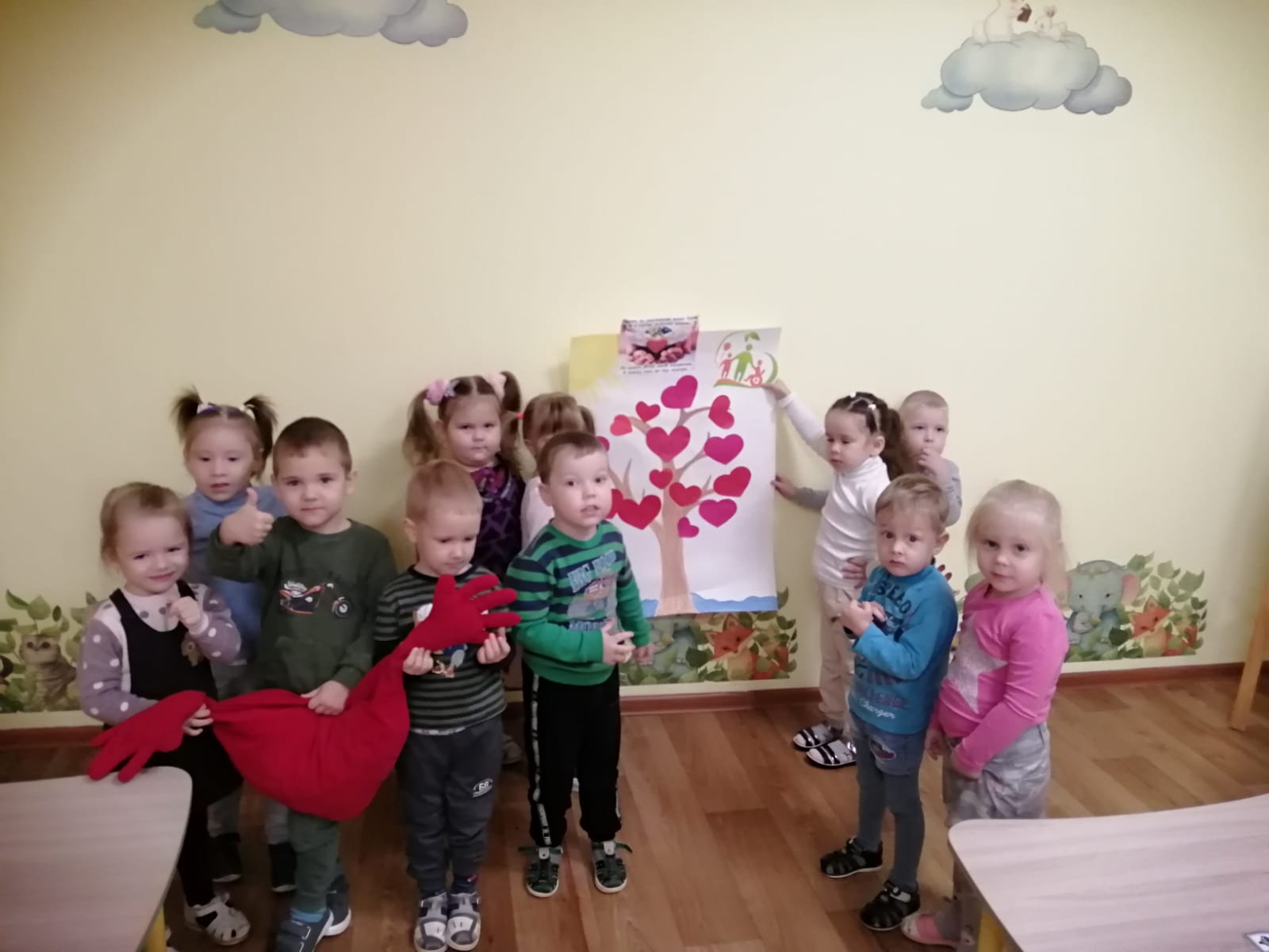 Опубликовано: 06.12.20213 декабря в младших и средних группах прошло мероприятие "Верь в себя", где ребятам рассказали о "необычных" детях, и в знак сочувствия и заботы была сделана коллективная работа "Хоровод доброты"/ 3 декабрь көнне кече һәм урта төркемнәрдә "үз-үзеңә ышан" дигән чара узды, анда балаларга "гадәти булмаган" балалар турында сөйләделәр, һәм кайгыртучанлык билгесе итеп "яхшылык әйләнеше"дигән коллектив эш башкарылды.