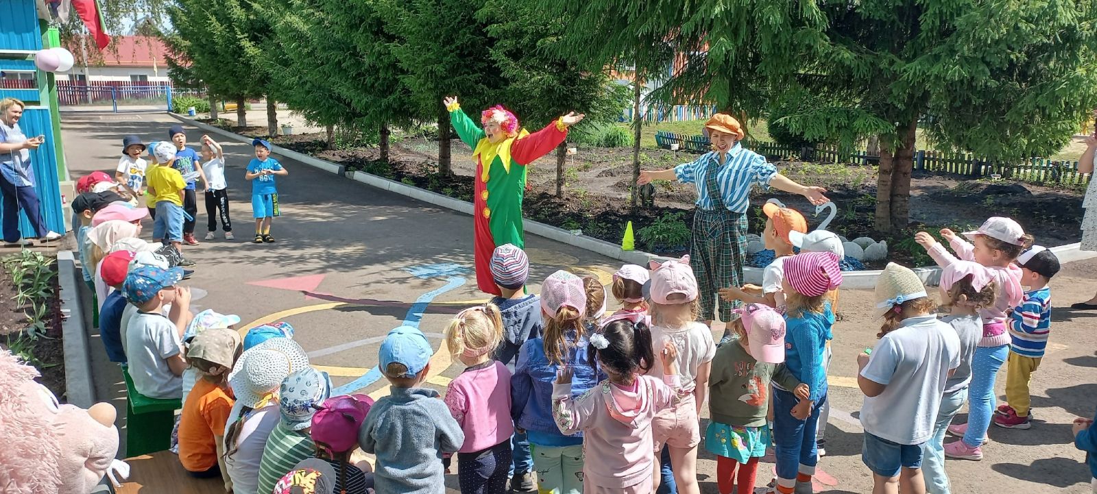 Опубликовано: 01.06.2023Сегодня наш детский сад отметил светлый, красочный праздник "День защиты детей". Мы постарались в этот день создать праздничную атмосферу и порадовать детей весёлыми играми, песнями, танцами./Бүген безнең балалар бакчасы якты, төсле "Балаларны яклау көне" бәйрәмен билгеләп үтте. Без бу көнне бәйрәм атмосферасы булдырырга һәм балаларны күңелле уеннар, җырлар, биюләр белән сөендерергә тырыштык.