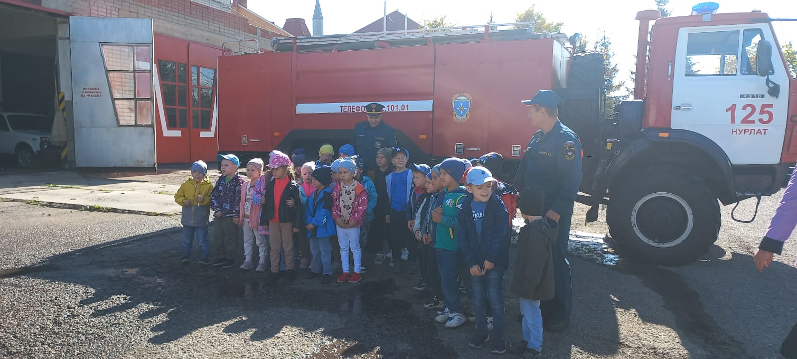 Опубликовано: 17.09.2023В рамках Месячника безопасности воспитанники нашего детского сада совершили экскурсию в Пожарно-спасательную часть-125. Экскурсия была познавательной и интересной для детей./ Куркынычсызлык айлыгы кысаларында безнең балалар бакчасында тәрбияләнүчеләр янгын-коткару-125 бүлегенә экскурсия ясадылар. Экскурсия балалар өчен белемле һәм кызыклы булды.