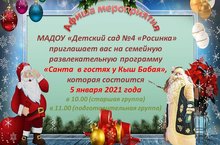 «Детский сад «Росинка» приглашает своих воспитанников и их родителей на семейную развлекательную программу