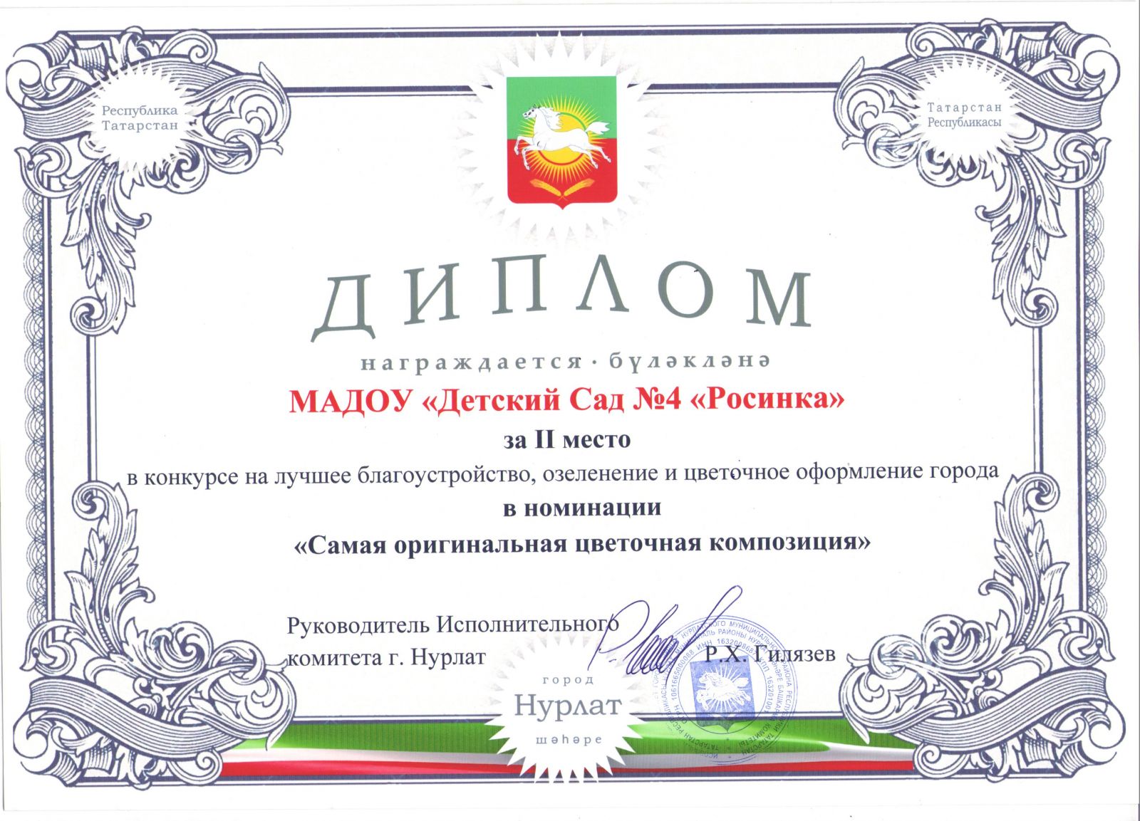 2022 год - Диплом 2 место в Конкурсе на лучшее благоустройство, озеленение и цветочное оформление города.