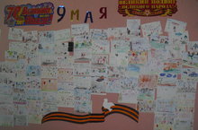 В преддверии 9 мая , и в рамках реализации проекта к 70-ти летию Победы . День Победы помнят деды, знает каждый из внучат.....В детском саду воспитатель по изодеятельности Толкуева Т.Г. устроила вернисаж детских работ. Эта выставка организована в знак благодарности всем, кто завоевал для нас эту великую Победу, как на фронте, так и в тылу.