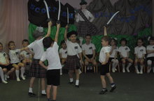 Сегодня в нашем детском саду учитель английского языка Мустафина Э.В. провела развлечение по английскому языку «Scоttish Highland Games» - «Игры шотландских горцев». Цель мероприятия было вызвать интерес к изучению английского языка, развивать креативное воображение и толерантность в отношении к другим мировым культурам, создать веселое настроение. Мероприятие прошло интересно и насыщено. Ребята показали обычаи этого праздника, играли вместе с родителями в игры, пели песни: «Big blue plane”, “Hello!», “Chicken noodle soup”, “My Bonny!”, “The more we are together”, читали стихи, мальчики исполнили «Танец с саблями» или «Sword Dance» который обязательно входил в программу Шотландских игр. Капитаны команд были одеты в национальные костюмы – килт.