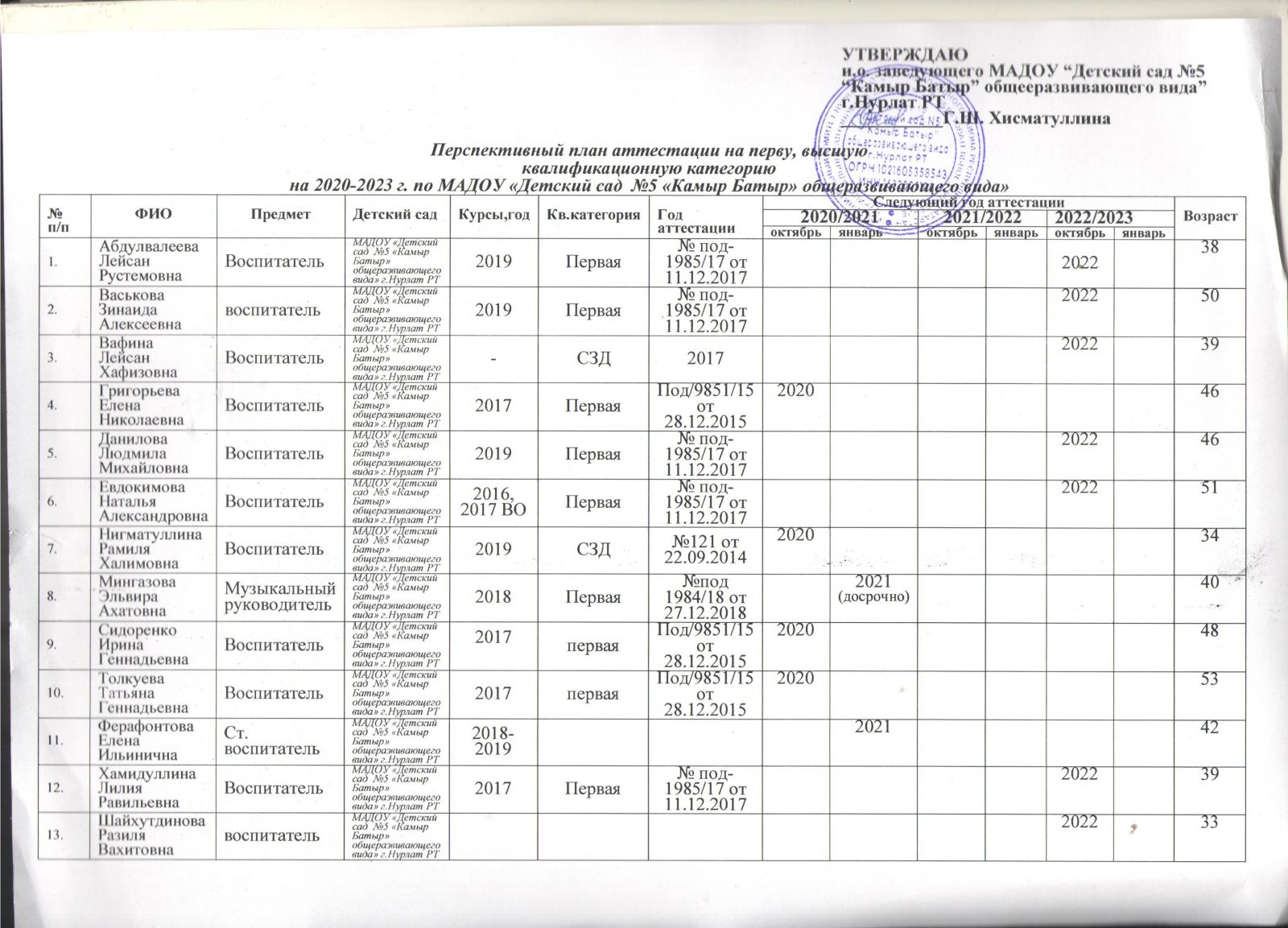 Перспективный план по аттестации на первую, высшую квалификационную категорию на 2020-2023 год