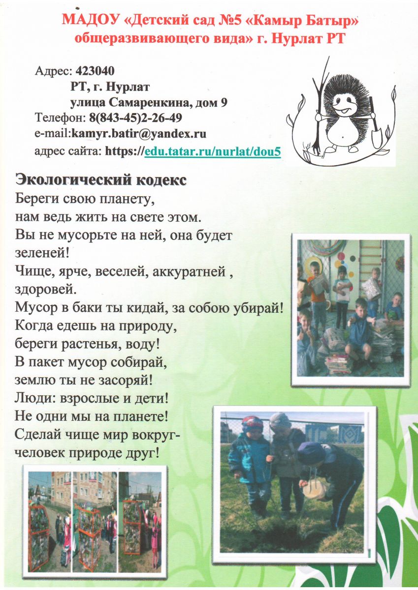 Экологический кодекс детского сада на 2018-2019 учебный год