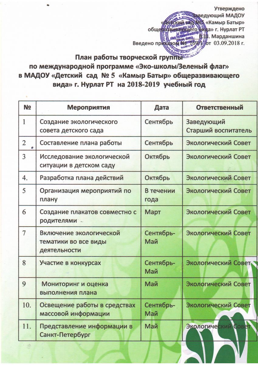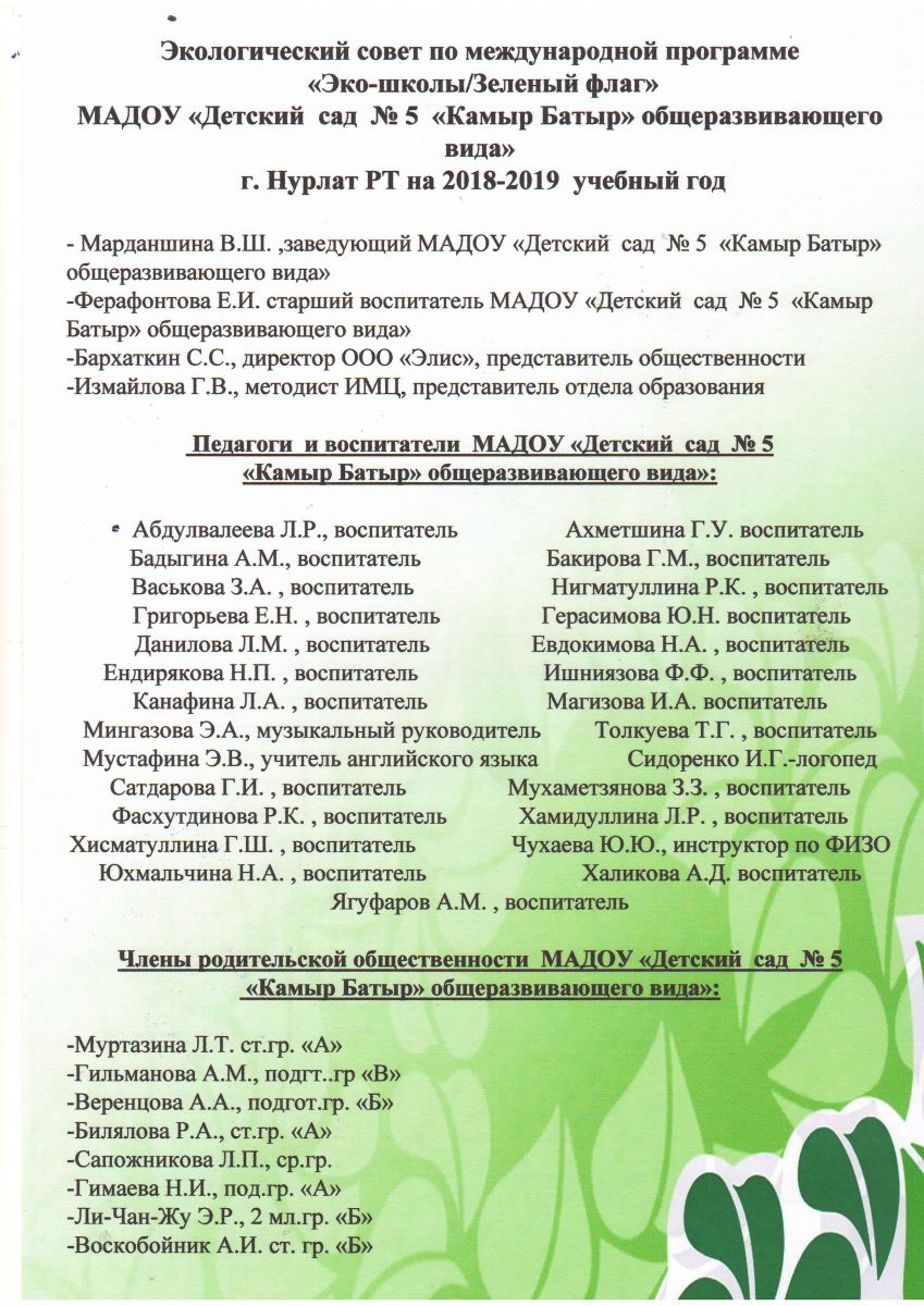 Экологический совет на 2018-2019 учебный год