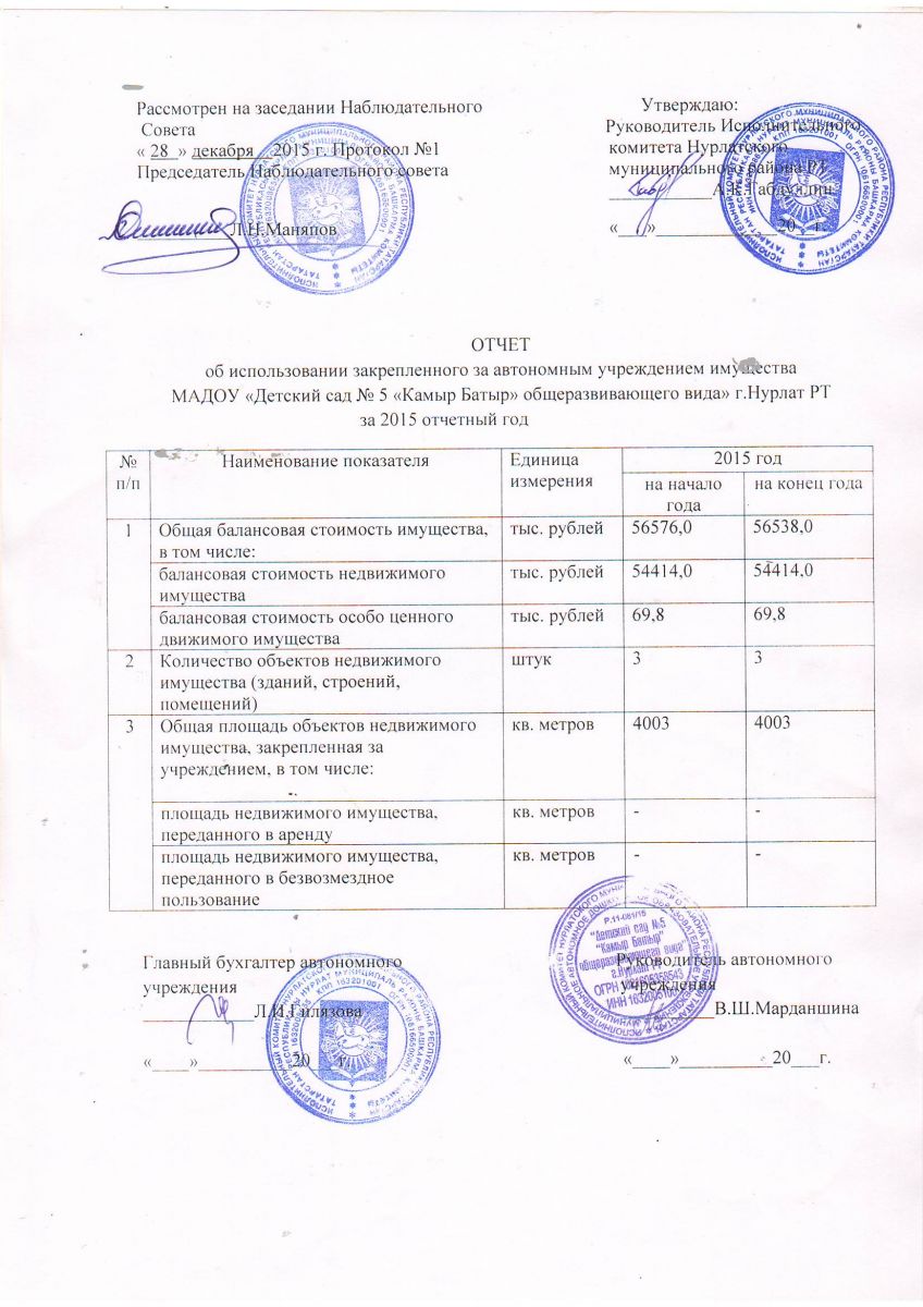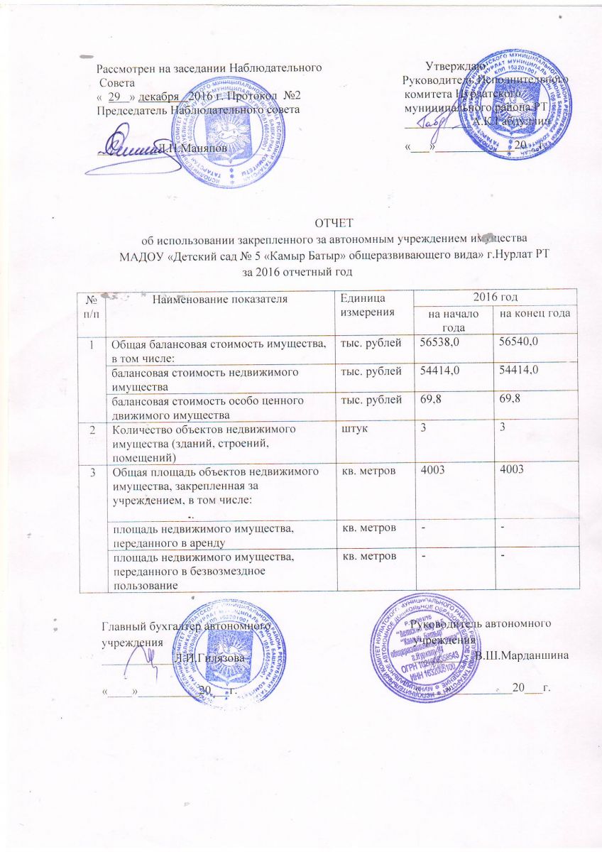 Отчёт об использовании закрепленного за автономным учреждением имущества / Автономияле учреждениегә беркетелгән мөлкәтне файдалану турында отчет