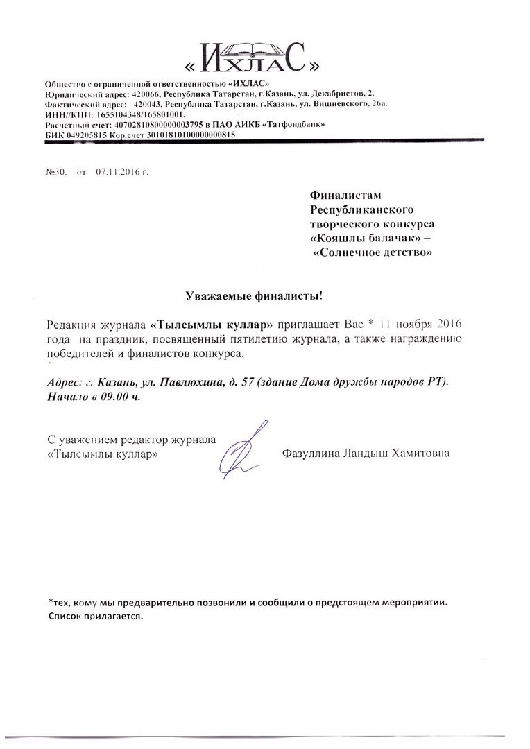 Опубликовано: 12.11.2016Сатдарова Аиша, воспитанница средней группы в Республиканском творческом конкурсе "Кояшлы балачак"- "Солнечное детство" вышла в финал в номинации "Коръән нуры"- "Свет Корана" и приглашена вместе с воспитателем Аглиуллиной Гульнарой Вагизовной 11 ноября в г. Казань для награждения