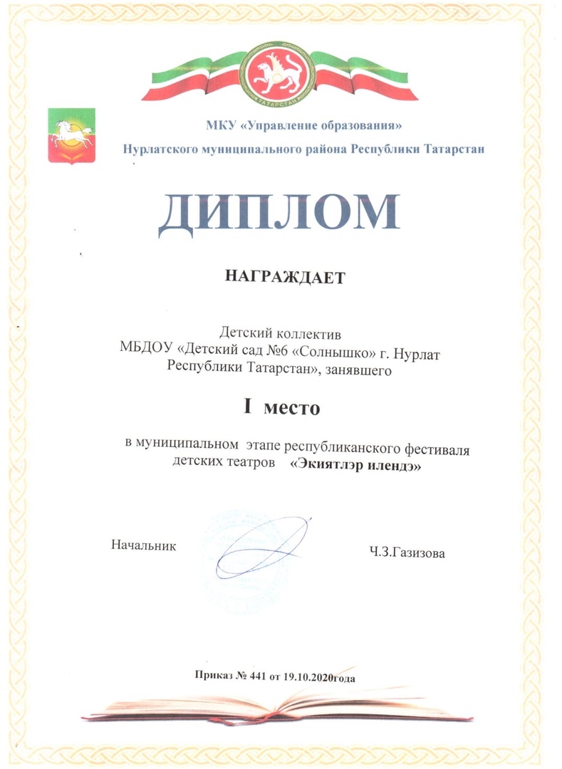 Опубликовано: 18.11.2020Мы заняли 1 место в муниципальном этапе республиканского фестиваля детских театров "Әкиятләр илендә".