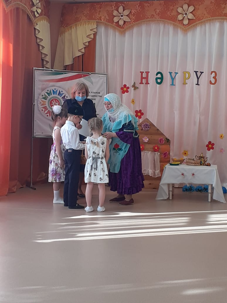 Халык бәйрәме Нәүрүз бик күңелле үтте. Балалар бу бәйрәм турында бик күп яңалыклар белделәр, шигырьләр сөйләделәр, татар телендә җырлар җырладылар, халык уеннары уйнадылар. Бәйрәмгә Яз — Нәүрүз һәм Кыш бабай килде. Берничә ярыштан соң Кыш Бабай Яз гүзәле Нәүрүзгә оттырды. Ул балалар белән кызыклы конкурслар һәм уеннар үткәрде.