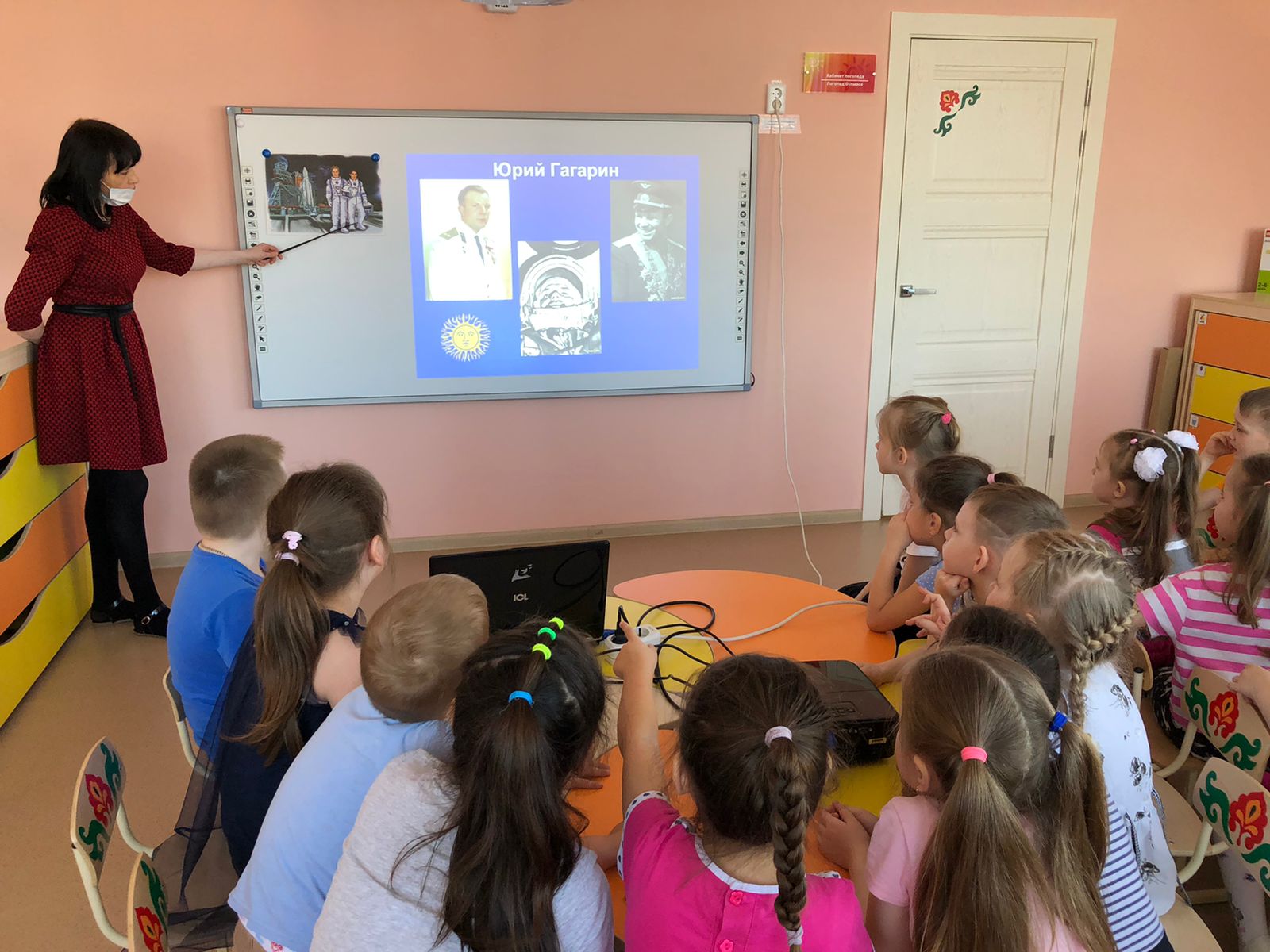 Безнең балалар бакчасында Космонавтика көненә багышланган төрле чаралар узды. Балалар космос һәм космонавтлар турында хикәяләр белән таныштылар, шигырьләр сөйләделәр, табышмаклар әйттеләр, аппликацияләр ясадылар. Барлык чараларда да иң мөһиме-балалар Җир планетасы, Кояш Һәм йолдызлар, безнең Кояш системасы, космоска очулар турында яңа белемнәр алдылар