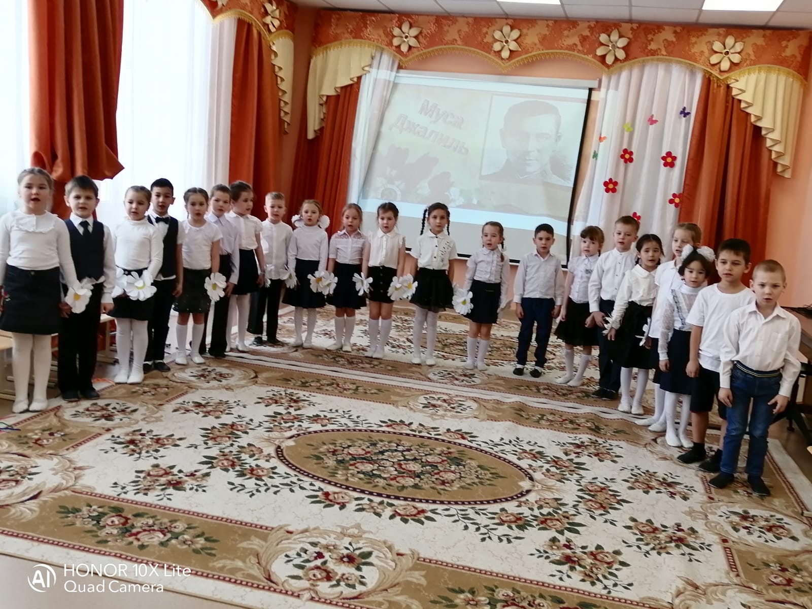 Безнең мәктәпкәчә белем бирү учреждениесендә герой шагыйрь Муса Җәлилнең тууына 117 ел тулуга багышланган «Синең исемең җыр сыман калды» дигән чара узды. Аның максаты-балаларны шагыйрьнең тормышы һәм иҗаты белән таныштыру, шигърияткә кызыксыну һәм мәхәббәт уяту, Ватан өчен милли горурлык хисе тәрбияләү.