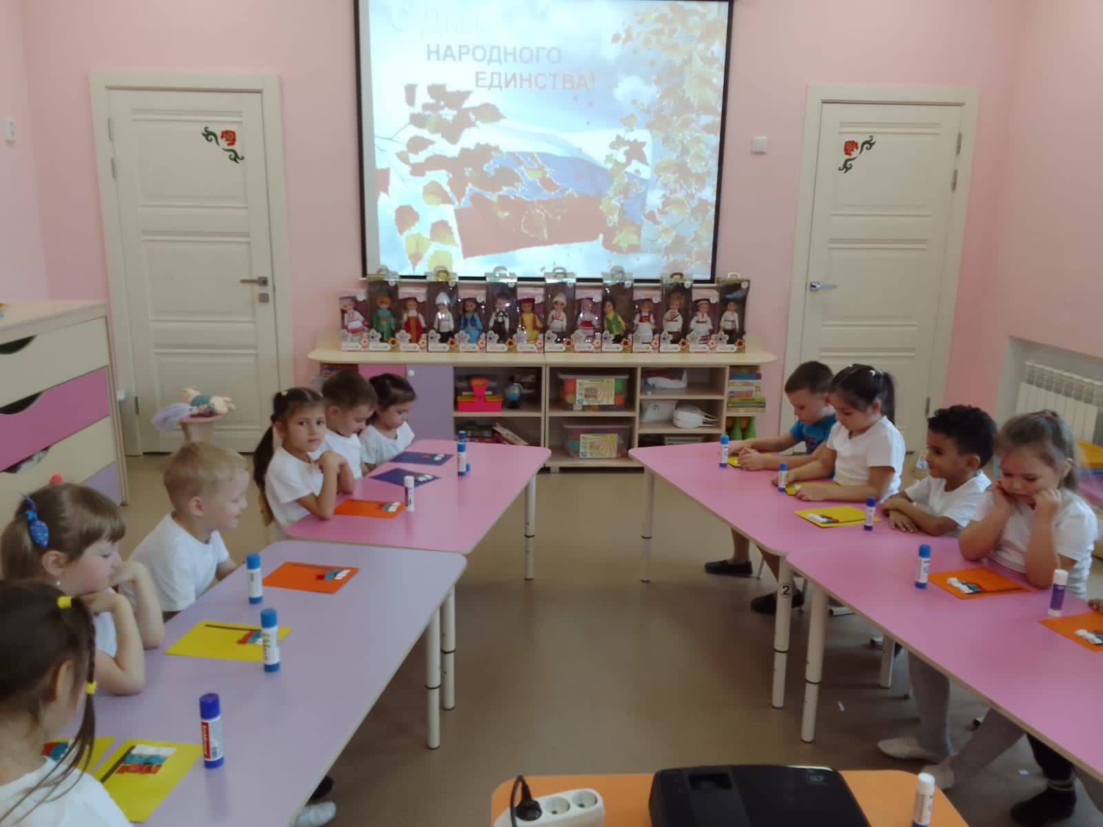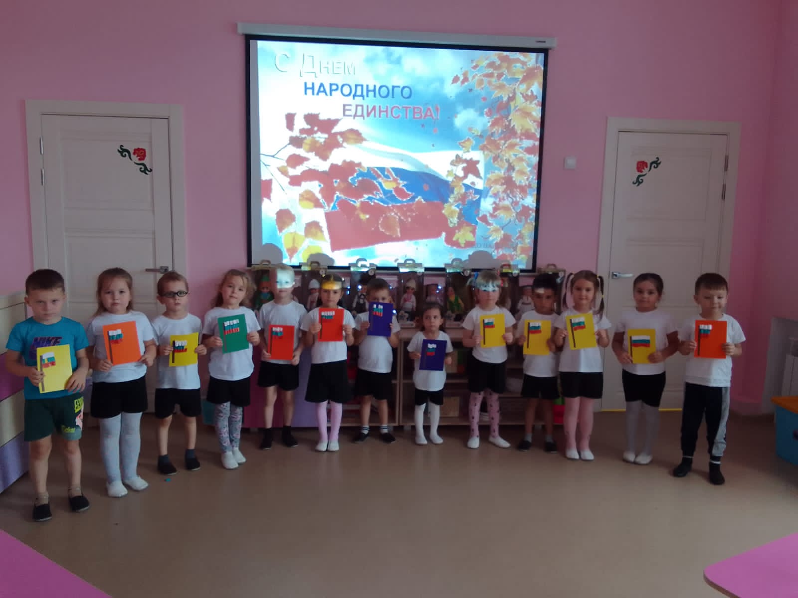 Опубликовано: 03.11.2023В преддверии праздника "Дня народного единства" в нашем детском саду было проведено мероприятие с целью знакомства детей с праздником - «День народного единства», расширения представления детей о родном крае, стране, в которой мы живем, развития любознательности, привития любви к Родине, воспитания патриотических чувств, доброжелательного отношения друг к другу, желания прийти на помощь.