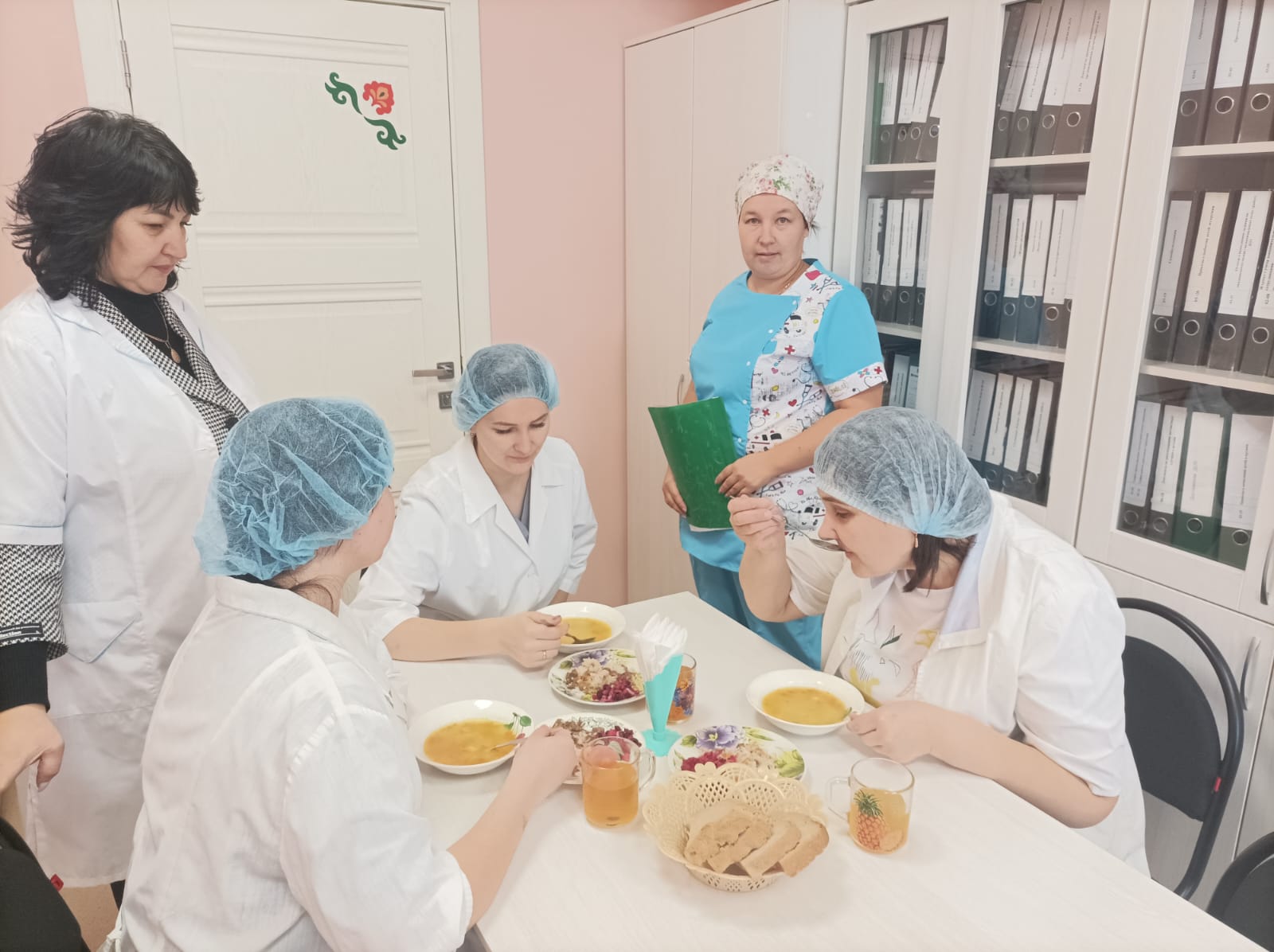31.10.2023 елда безнең балалар бакчасында ата-аналар җәмәгатьчелеге балаларның туклануын оештыруны контрольдә тотты. Әлеге контрольнең максаты ата-ана җәмәгатьчелеген азык-төлек сатып алудан алып төркемнәрдә ризык кабул итүгә кадәр ДОУДА туклануны оештыру процессы белән таныштыру иде. Балалар бакчасы мөдире балалар бакчасында туклануны оештыруны регламентташтыручы норматив документлар белән таныштырды: балалар бакчасының «балаларны тукландыруны оештыру турында», «бракераж комиссиясе турында» боерыклары, сезоннар буенча якынча 10 көнлек менюлар, ризыклар әзерләүнең технологик карталары. Ата-аналар ризыкларның тәмле сыйфатларын билгеләп үттеләр һәм уңай бәя бирделәр.