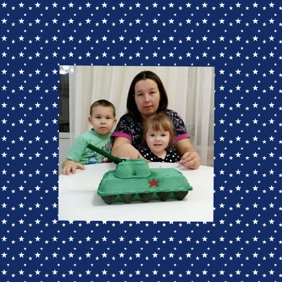 Таймуллиннар гаиләсе дә "саклаучыга Экоподарок" акциясендә катнаша. Яраткан әтиләре өчен алар кул астындагы материаллардан зур һәм матур танк ясаганнар.