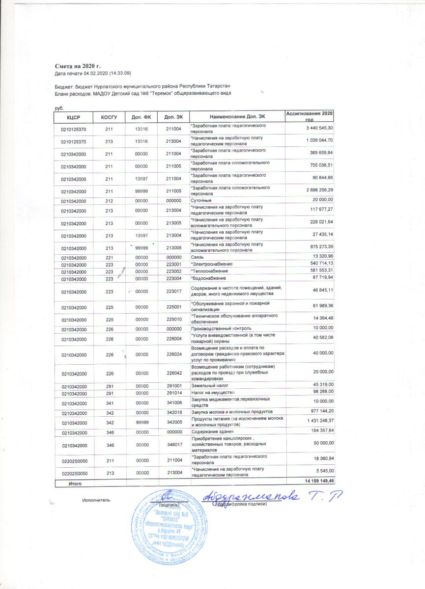 Бланк расходов на 2020 год/Чыгымнар бланкы
