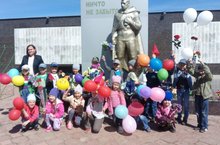 9 май көнне балалар бакчасының педагогик коллективы билгесез солдат һәйкәленә чәчәкләр куярга чыкты.