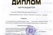 Наш Детский сад занял 1 место в районном этапе "Зелёный огонёк-2018" "Безнең балалар бакчасы "Яшел ут" район этабында 1 нче урынны алды.