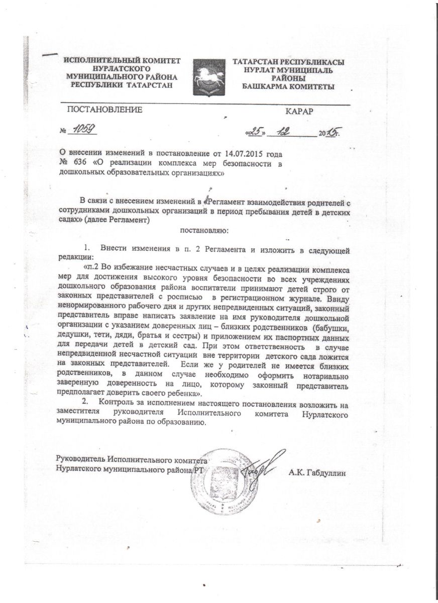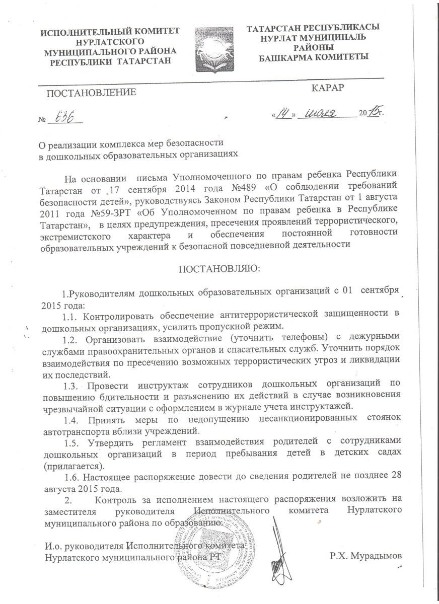 ПОСТАНОВЛЕНИЕ о реализации комплекса мер безопасности в ДОО.