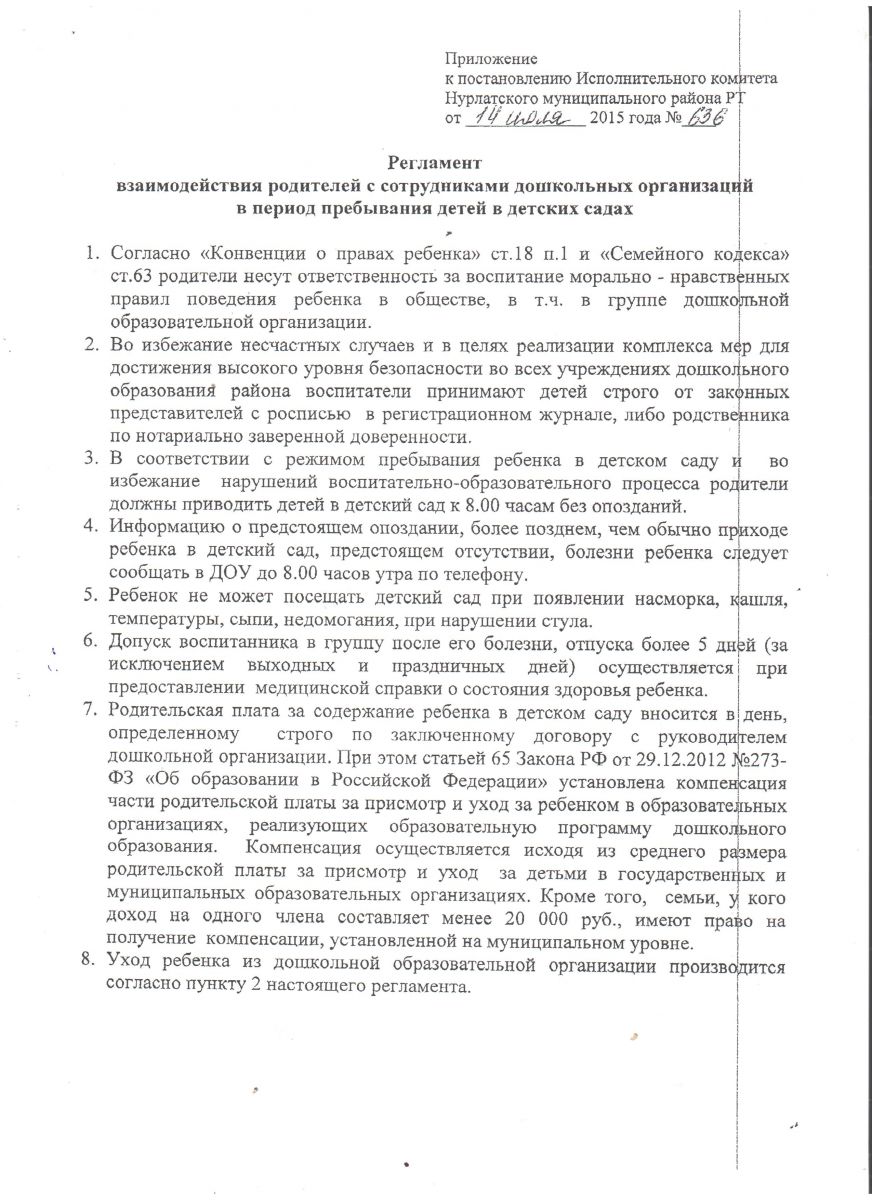 Регламент взаимодействия родителей с сотрудниками ДОО в период пребывания детей в детских садах.