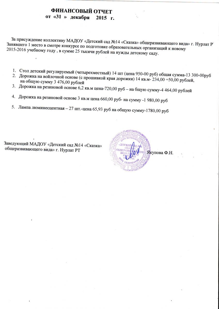 Финансовый отчет-за 1 место -25 тыс. /25-мең-1 нче урын өчен финанс хисап отчеты.