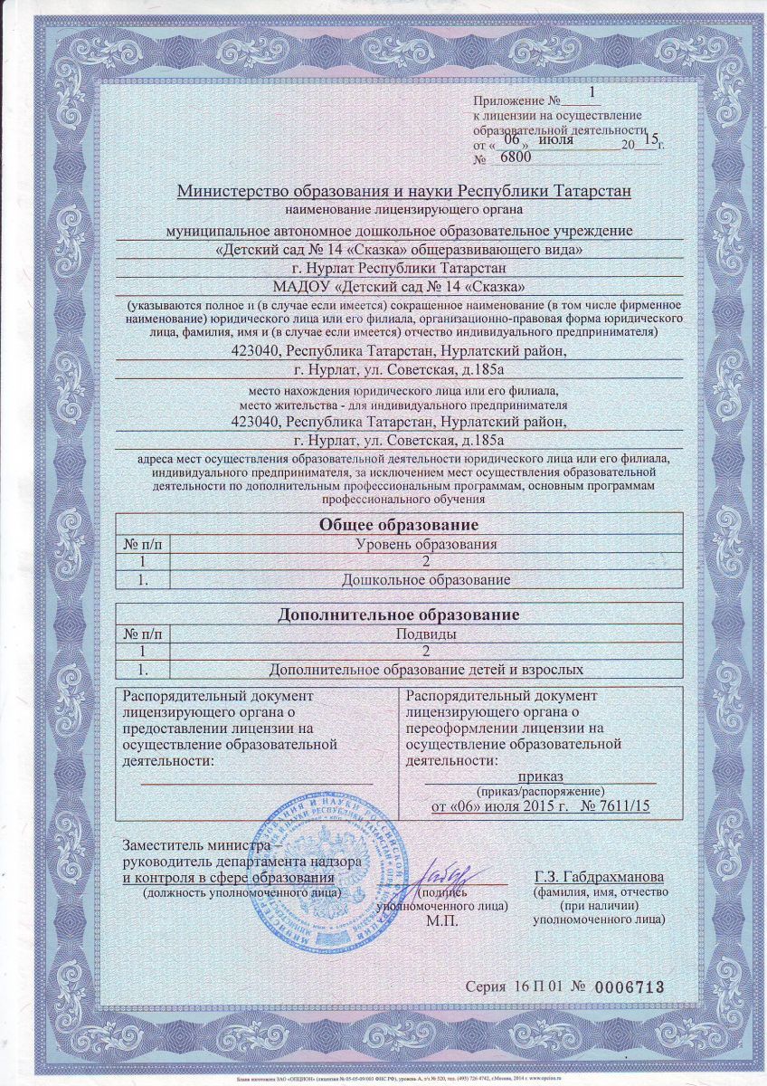 Дополнение к Лицензии. /Лицензиягә өстәлмә.