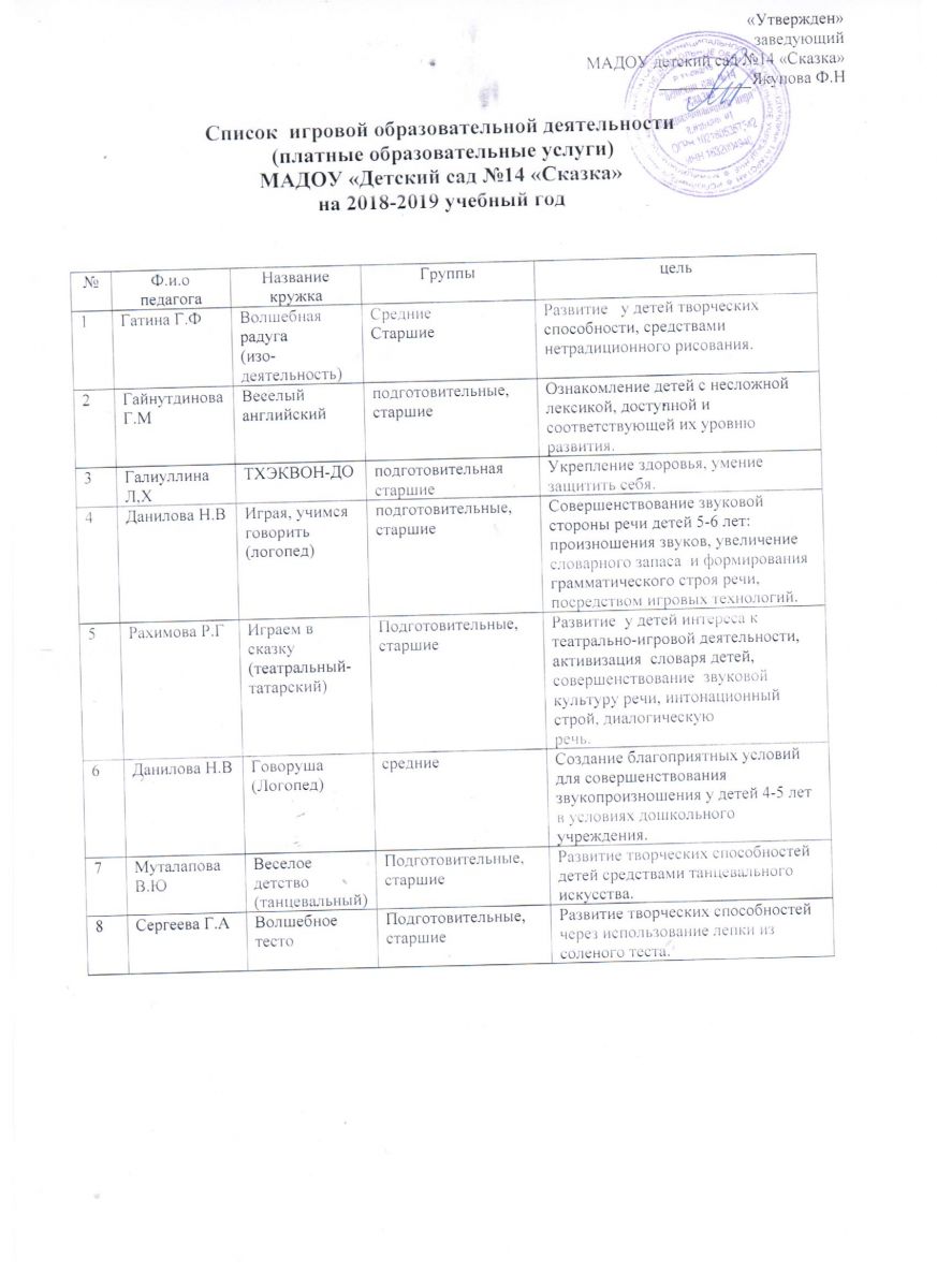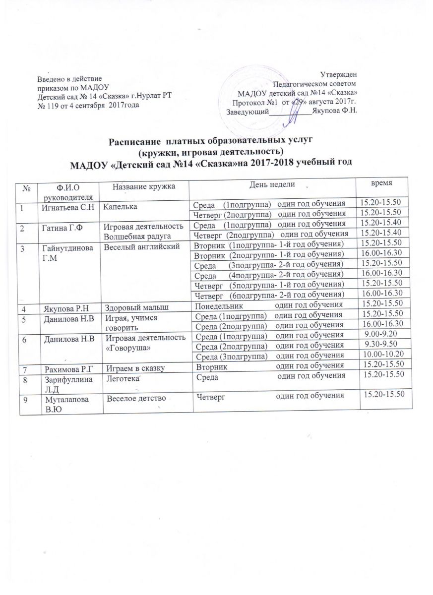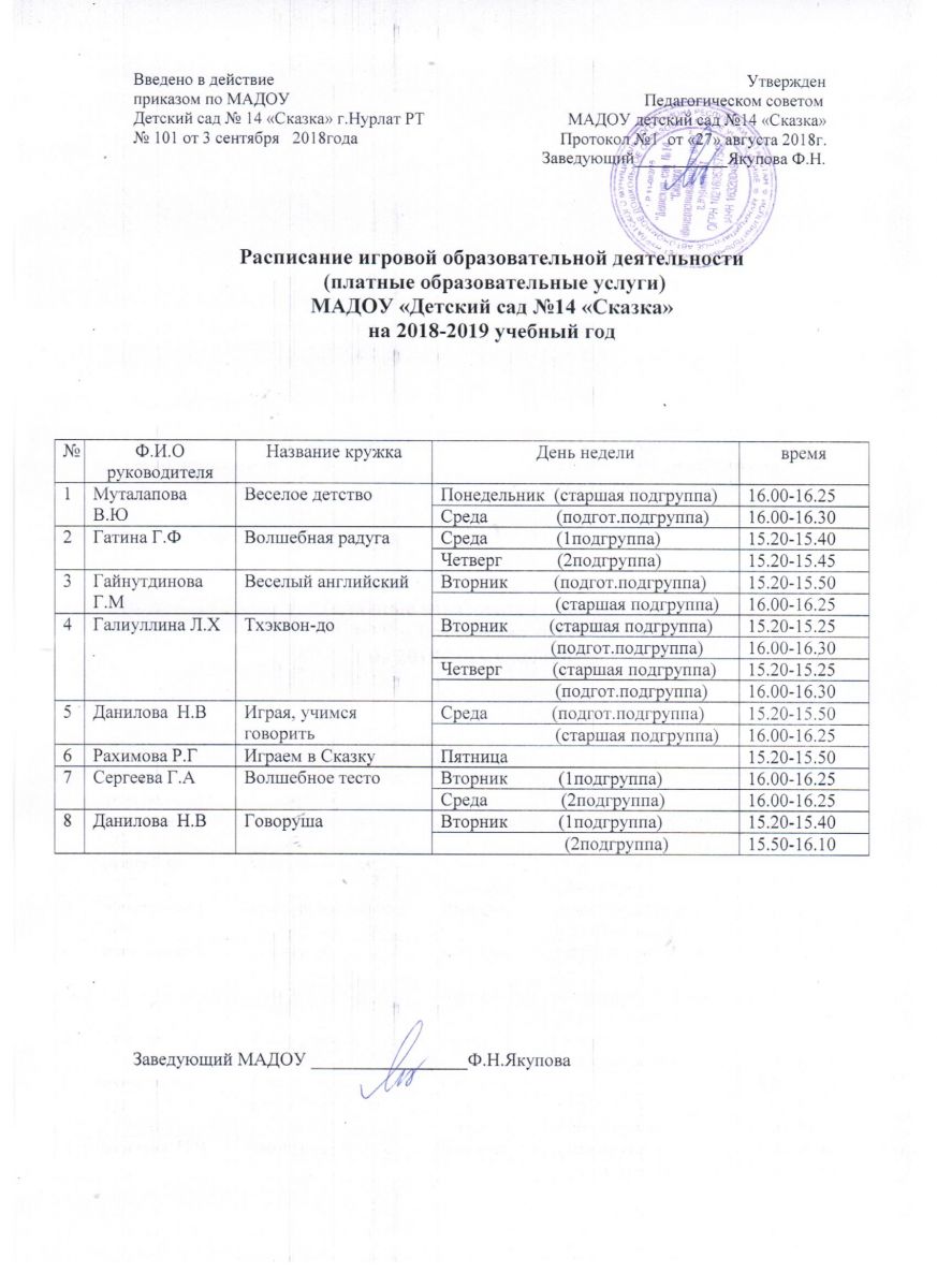 Рассписание платной игровой обр_деятельности на 18-19 уч_год.Түләүле белем бирү хезмәтләре җәдвәл
