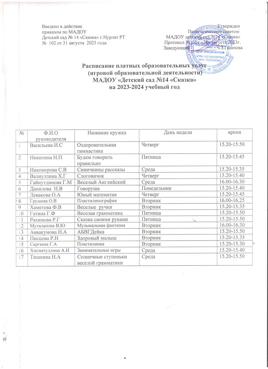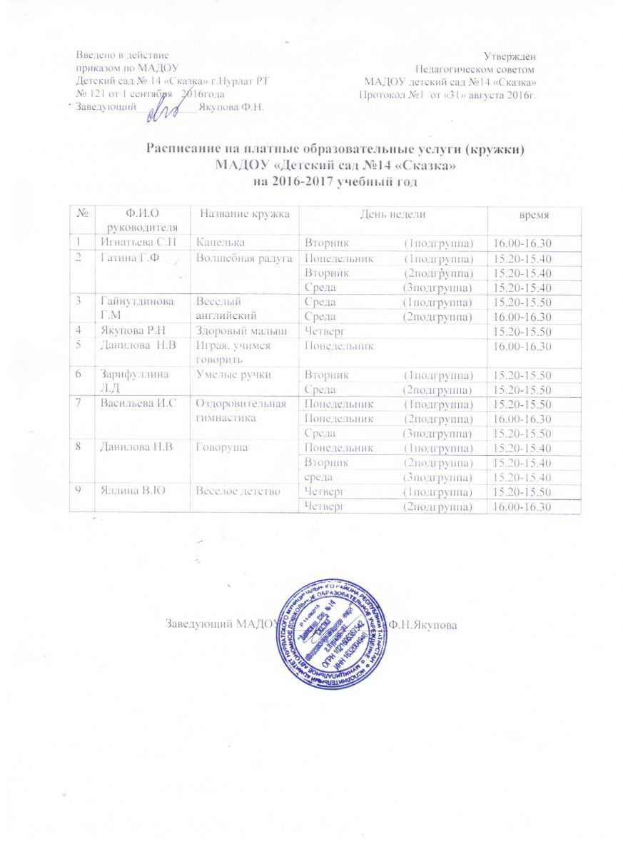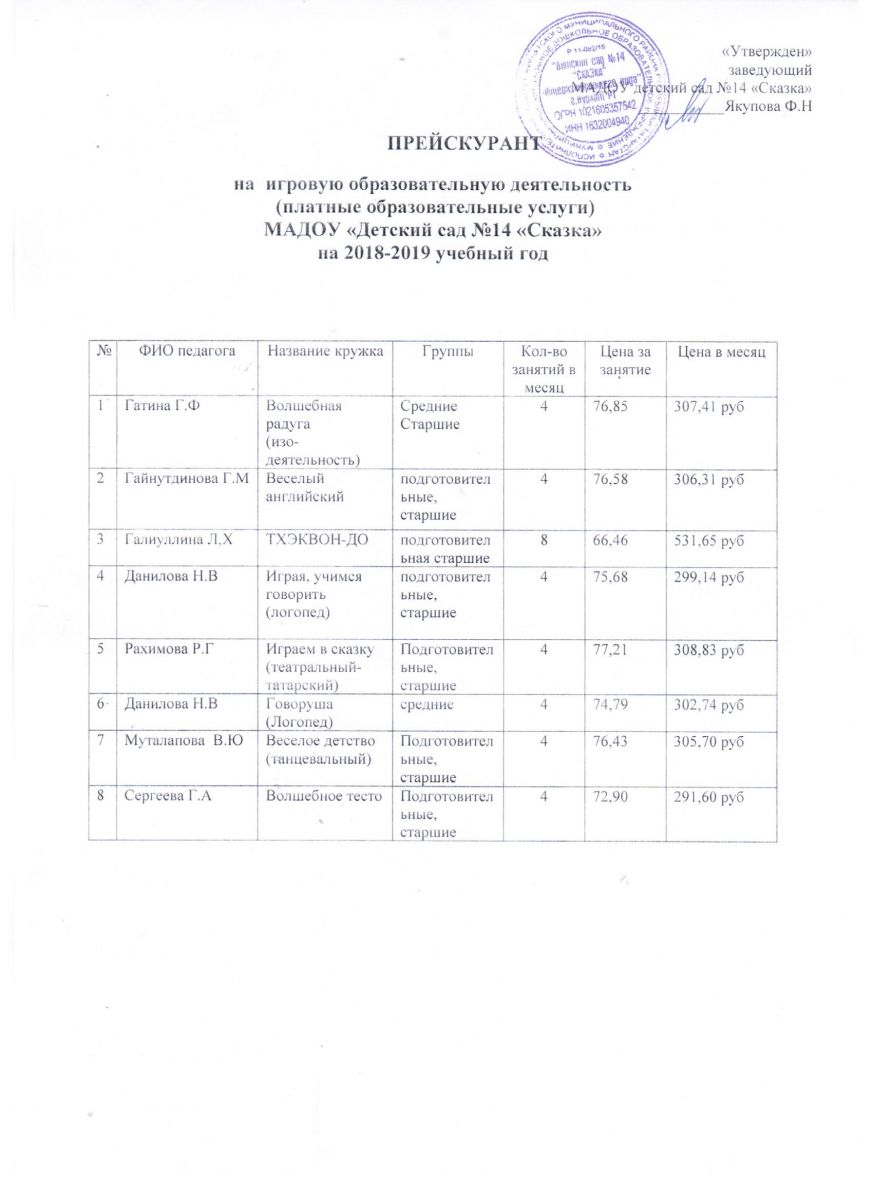 Рассписание платной игровой обр_деятельности на 18-19 уч_год.Түләүле белем бирү хезмәтләре җәдвәл