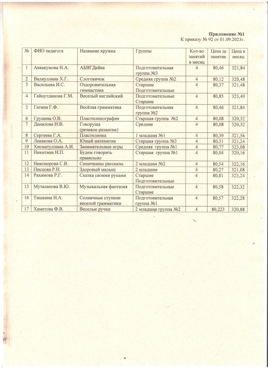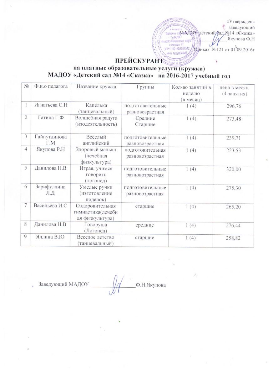 Прейскурант на кружки 16-17 уч. год.